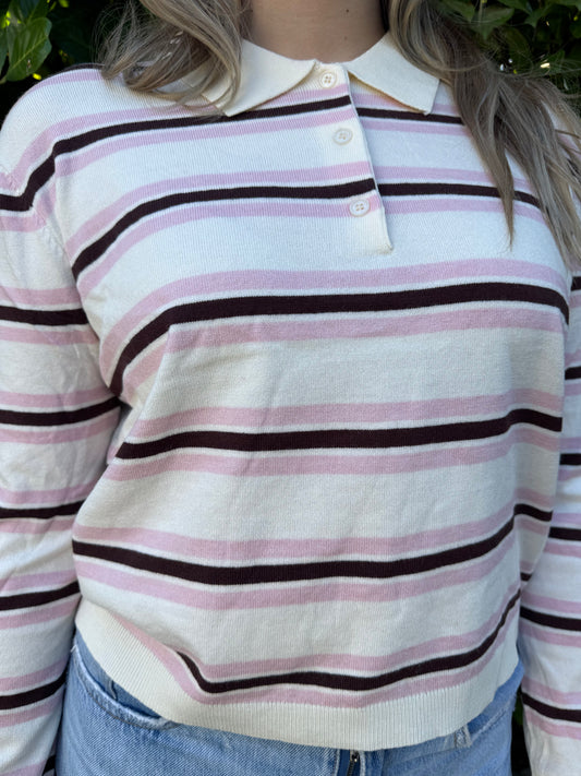 Dünnes Sweatshirt mit feinen Streifen rosa braun