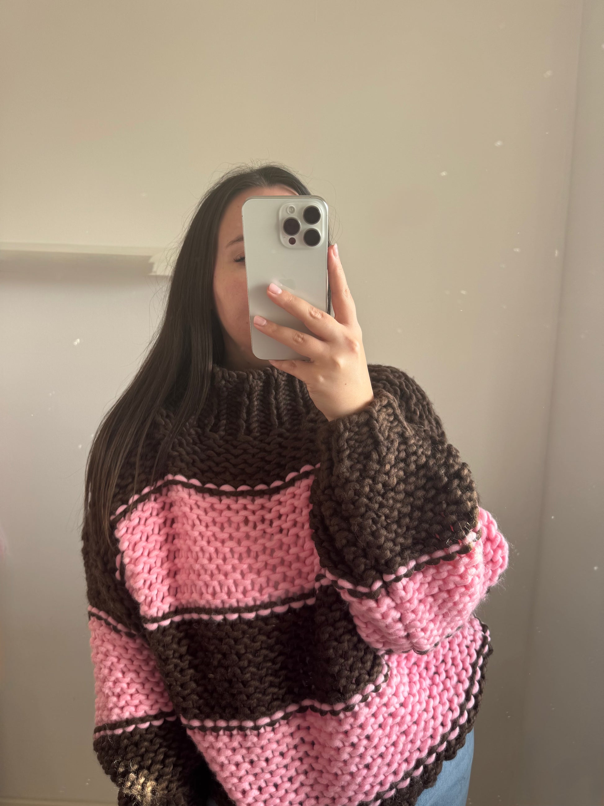 Grobstrick Pullover braun rosa