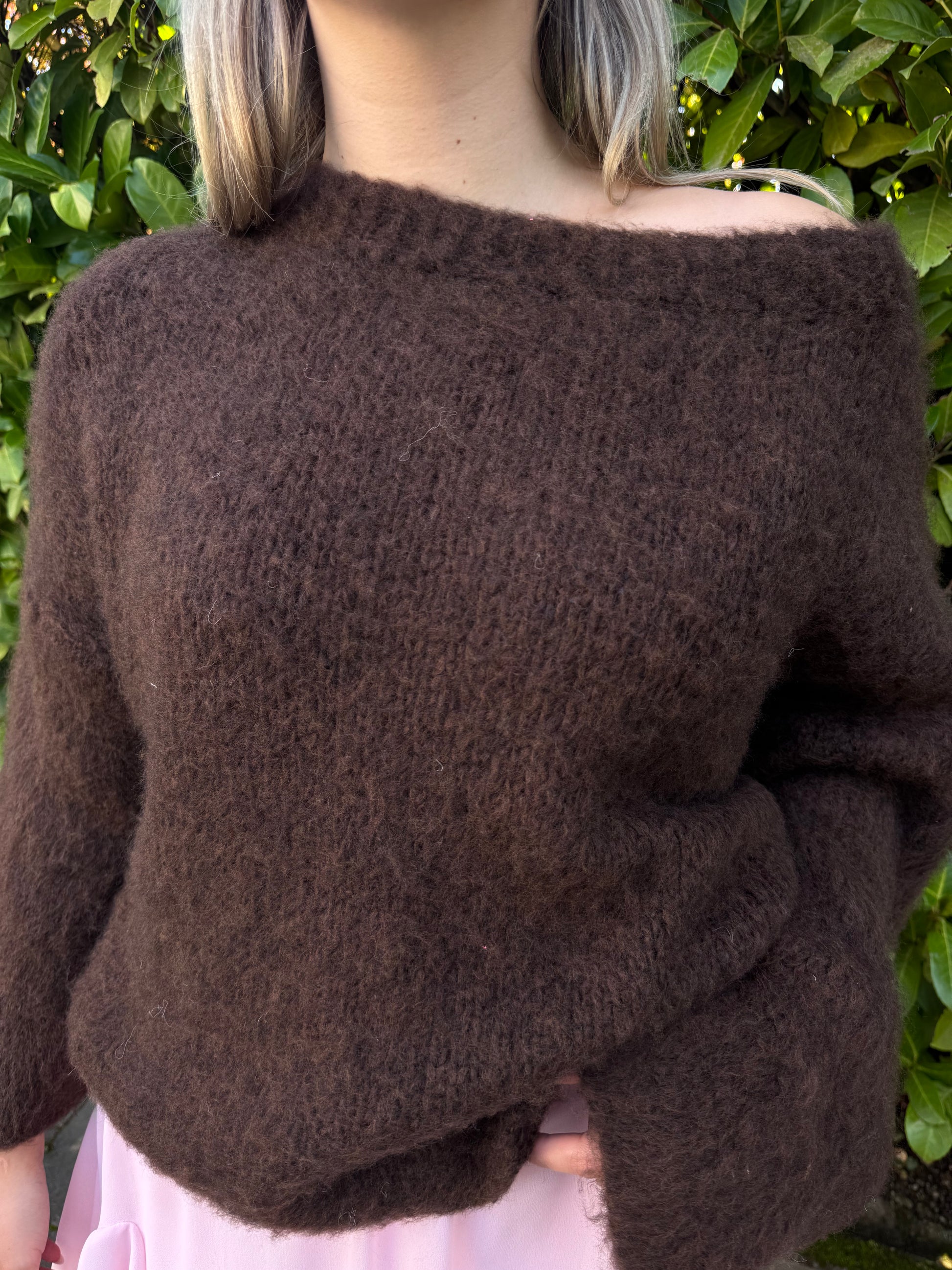 kuscheliger Pullover off shoulder braun