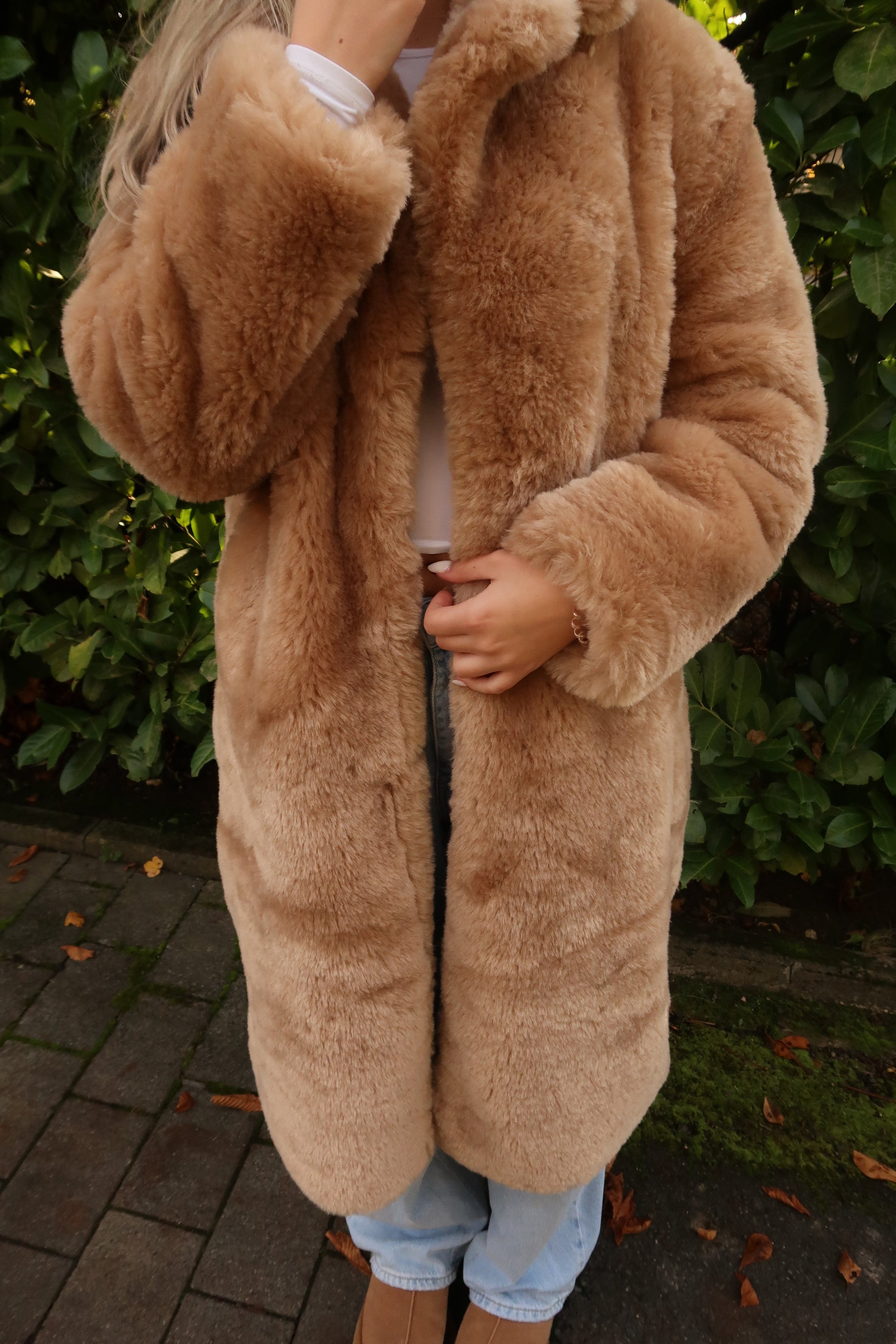 Lange Felljacke caramel